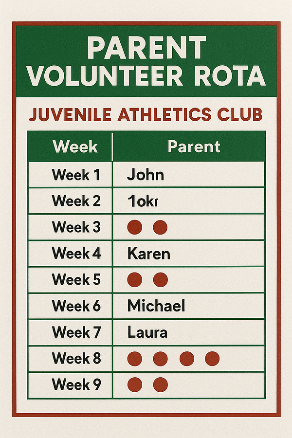 To support the smooth running of training sessions and to allow coaches to focus on coaching, all parents of registered juvenile members are required to volunteer on a rota.