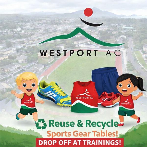 Sports gear donation table – track shoes, shorts, sportswear, and all athletics-related gear welcome