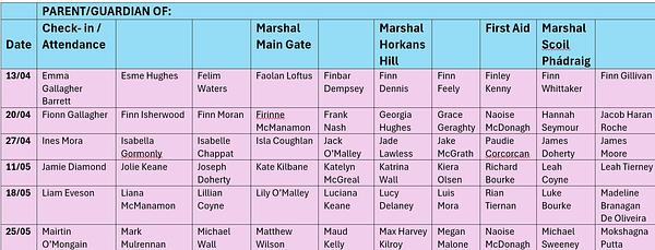 Please make note of the dates assigned, as all areas are required to be supervised, if you do not attend then there will be an area unsupervised.